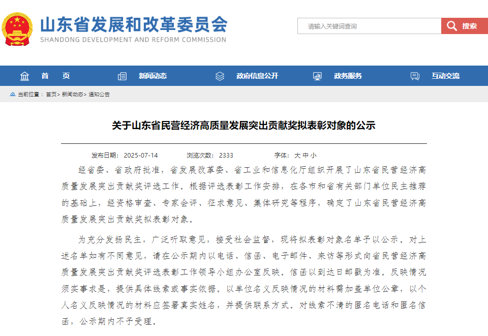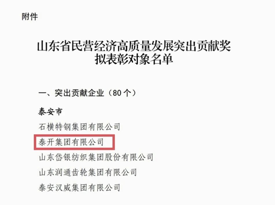 泰开集团入围“山东省民营经济高质量发展突出贡献奖拟表彰对象公示名单”